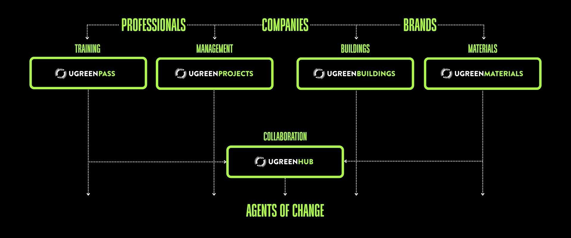 Companies benefit from UGREEN Projects and UGREEN Buildings, which deliver in-depth analysis of each business context and solutions that boost real estate profitability, increase people’s productivity, and drastically.